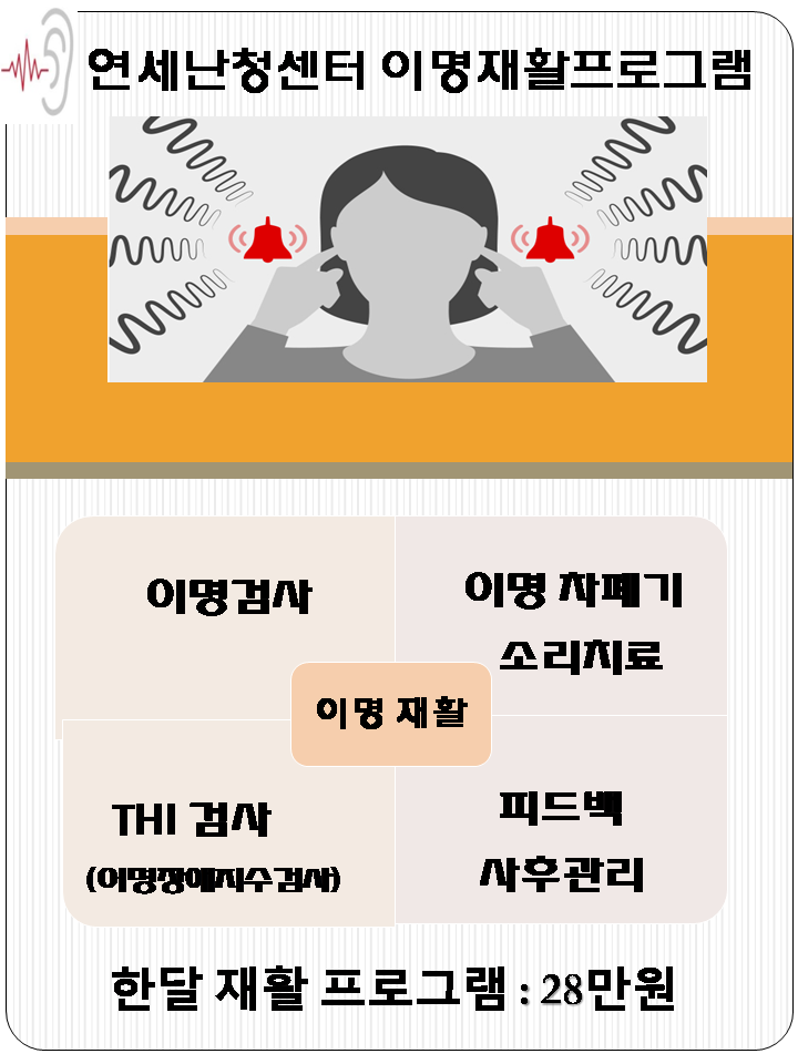 공지사항 이명개선 "이명재활프로그램"시행 작성자 관리자 작성일 2020-11-26 09:03 조회 1638 자세한 상담과 방법은 검사후 진행되오니 반드시 예약 후 방문 부탁드립니다.예약문의 : 031.413.6477카카오톡 플러스친구 : 연세난청센터 좋아요 3 싫어요 2 인쇄 « 2020년 7월부터 변경되는 보청기정부보조금 안내 시간 변경 안내 » 목록보기 답글쓰기 Powered by KBoard