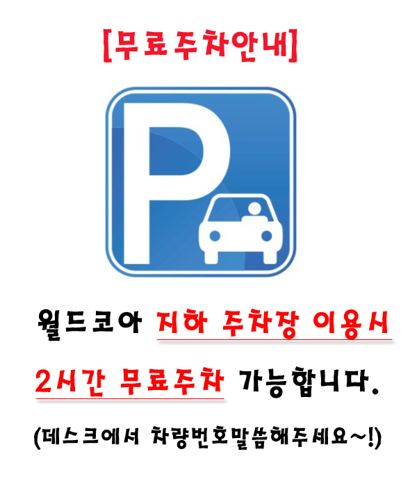 공지사항 무료주차 안내입니다^^ 작성자 관리자 작성일 2021-09-09 02:50 조회 3418 좋아요 4 싫어요 1 인쇄 « 시간 변경 안내 2024년 추석 연휴 휴무 안내 » 목록보기 Powered by KBoard